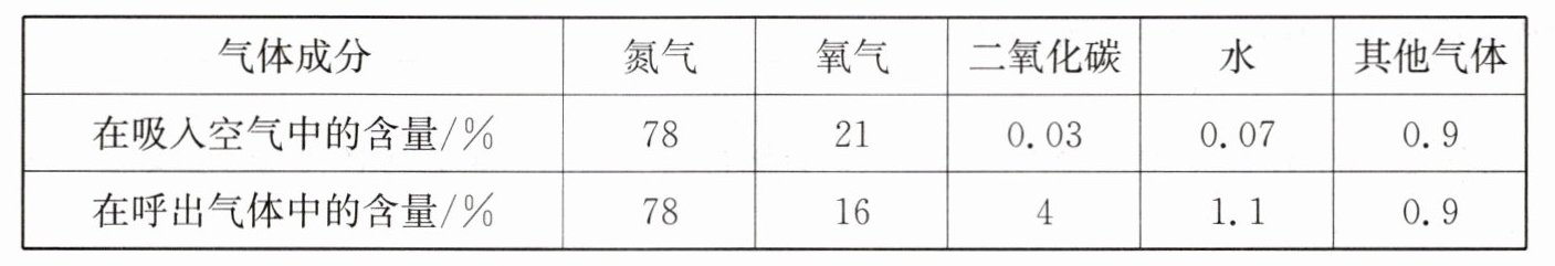 变式4 下表是某人吸入空气与呼出相同体积气体的成分含量比较数据,分析正确的是 ( )