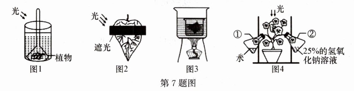 D.图4中的两组叶片,脱色、漂洗后滴加碘酒,②号叶片会变蓝