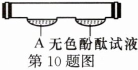 10. 小明设计了如图装置探究“微粒是不断运动的”,一段时间后,可观察到无色酚酞试液变红,则物质 $ {A} $ 是 ( )