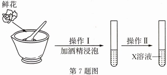 上图是自制酸碱指示剂的实验。操作Ⅱ的名称是____,判断 $ {X} $ 是否能作酸碱指示剂的依据是____。