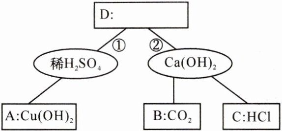 变式1 如图为酸碱的化学性质知识网络,A、B、C、D是四种常见的不同类别的无机化合物,图中短线表示两种物质在一定条件下可以发生化学反应。请你据图回答: