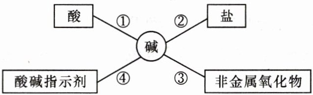 例1 酸、碱、盐在生活、生产中应用广泛,使用时必须十分小心,氢氧化钠具有强烈的______,实验时最好戴防护眼镜,为了便于理解和记忆,小丽同学总结了碱的化学性质如图,请你根据要求回答下列问题: