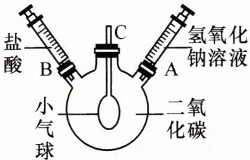 实验操作:先通过A颈往瓶内注入氢氧化钠溶液,观察到小气球的形状发生了变化;过一段时间后再通过B颈往瓶中注入盐酸,发现小气球的形状又发生了改变。