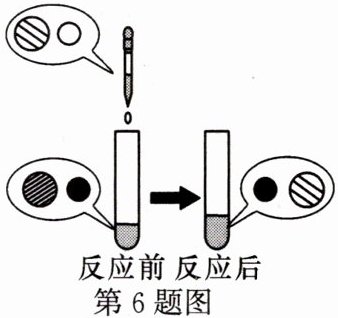 6. 向氢氧化钾溶液中滴加稀硫酸至恰好完全反应,反应前后溶液中存在的离子种类如图所示