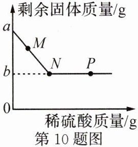 10. 向盛有$a g$铜锌混合物的烧杯中加入稀硫酸,该过程中剩余固体与加入稀硫酸的质量关系如图所示。下列说法错误的是( )