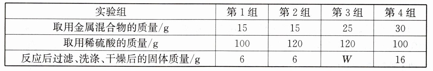 13. 实验小组在实验室找到一瓶含有铜和铁的均匀混合物。为测定该混合物中铁的质量分数,分别取一定质量的混合物与稀硫酸进行反应,实验分四组,所得数据如下表所示: