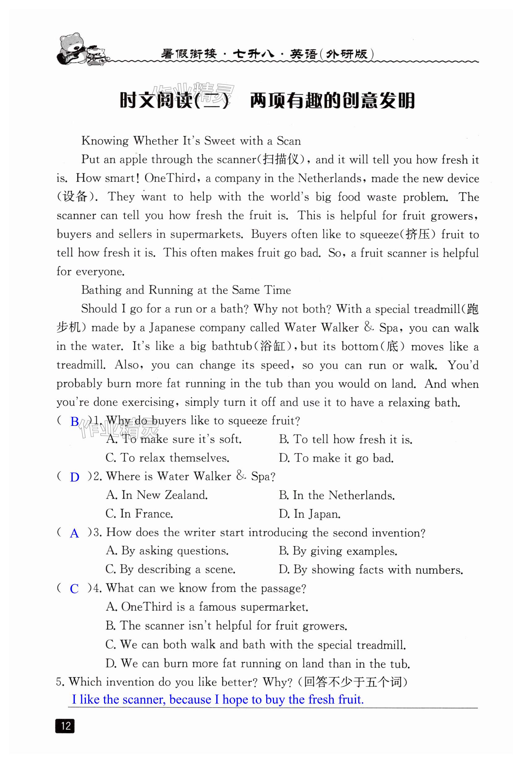 注:目前有些书本章节名称可能整理的还不是很完善,但都是按照顺序排列的,请同学们按照顺序仔细查找。练习册 2025年暑假衔接七年级英语外研版延边人民出版社 答案主要是用来给同学们做完题方便对答案用的,请勿直接抄袭。