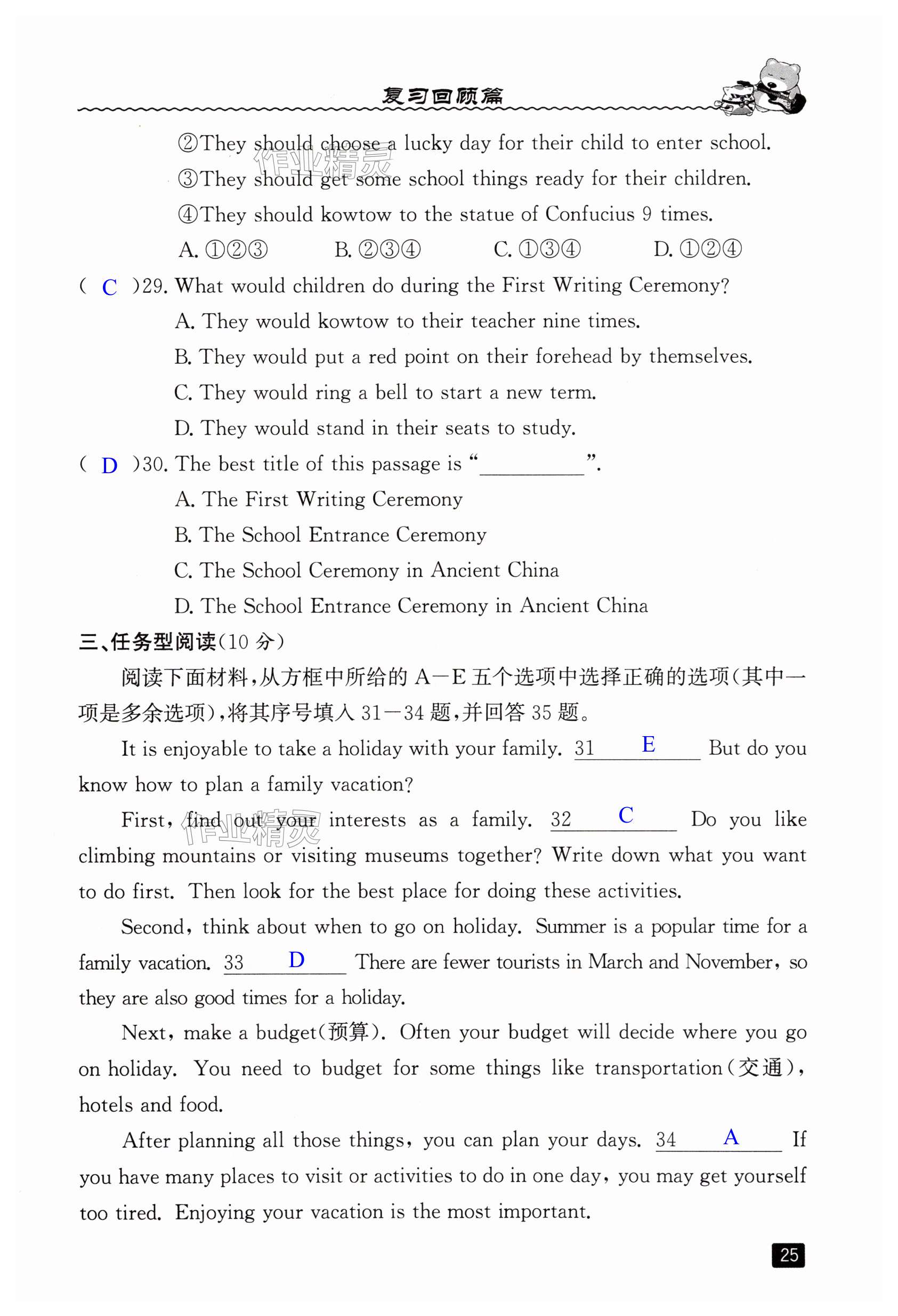 注:目前有些书本章节名称可能整理的还不是很完善,但都是按照顺序排列的,请同学们按照顺序仔细查找。练习册 2025年暑假衔接七年级英语外研版延边人民出版社 答案主要是用来给同学们做完题方便对答案用的,请勿直接抄袭。