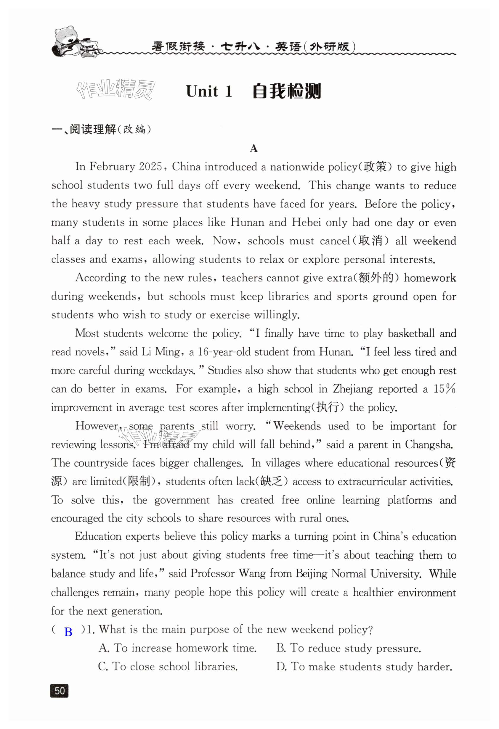 注:目前有些书本章节名称可能整理的还不是很完善,但都是按照顺序排列的,请同学们按照顺序仔细查找。练习册 2025年暑假衔接七年级英语外研版延边人民出版社 答案主要是用来给同学们做完题方便对答案用的,请勿直接抄袭。