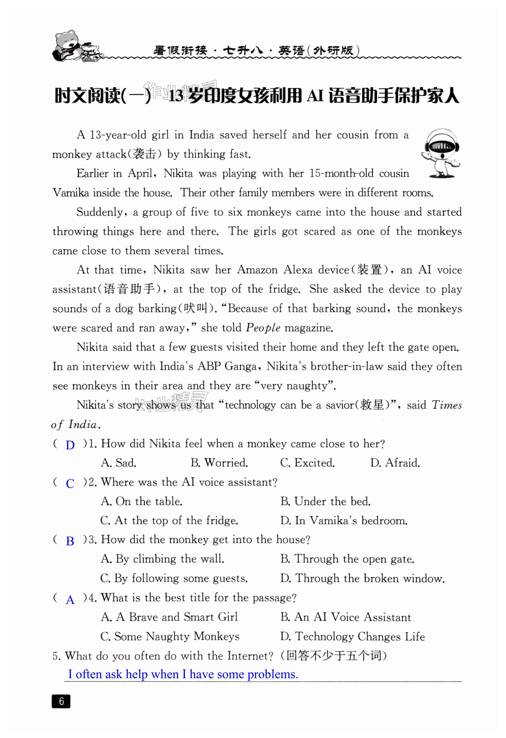 2025年暑假衔接七年级英语外研版延边人民出版社