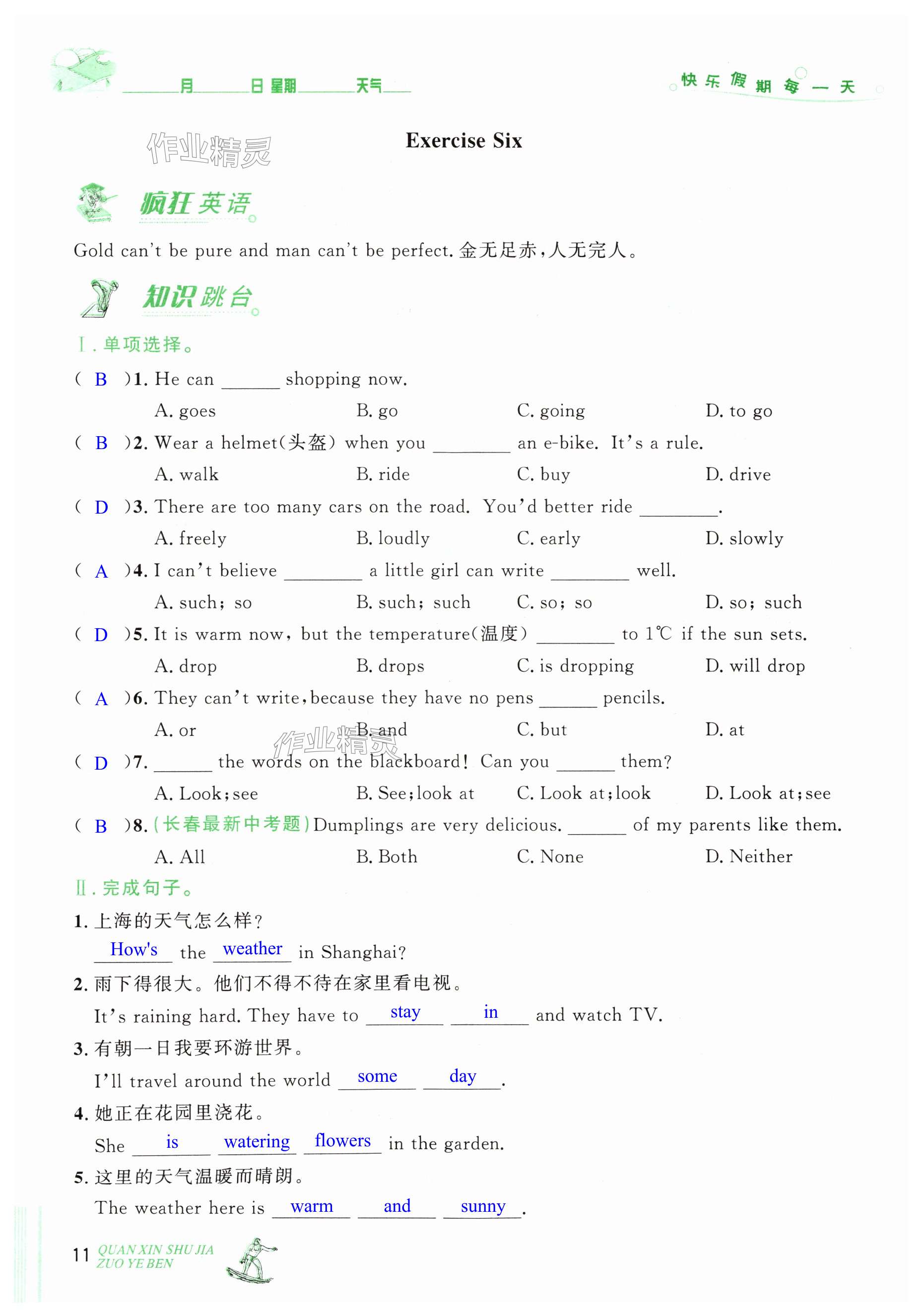 注:目前有些书本章节名称可能整理的还不是很完善,但都是按照顺序排列的,请同学们按照顺序仔细查找。练习册 2025年优秀生快乐假期每一天全新暑假作业本七年级英语人教版 答案主要是用来给同学们做完题方便对答案用的,请勿直接抄袭。