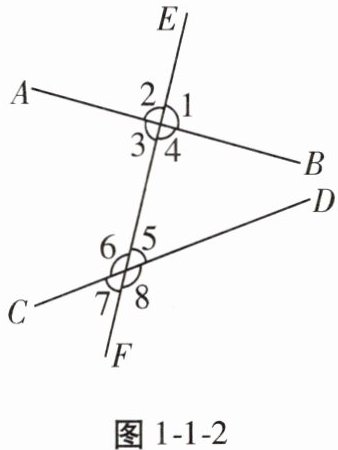 如图 1 - 1 - 2,两条直线 AB,CD 被第三条直线 EF 所截。