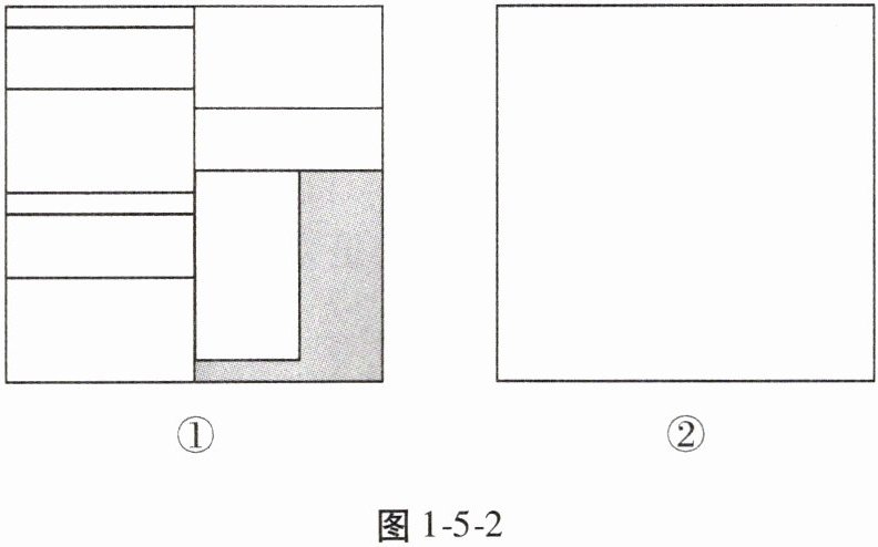 第二小组也领了 8 个大小、形状完全相同的小长方形, 把它们按图 1-5-1②所示的方式放置在一个大长方形中, 求图 1-5-1②中阴影部分的面积。