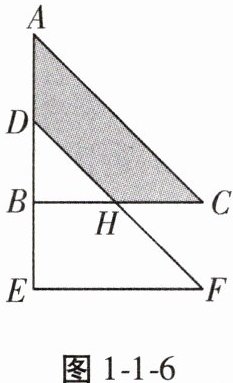 5. 如图 1 - 1 - 6,将直角三角形 ABC 沿 AB 方向平移 2 cm 得到三角形 DEF,DF 交 BC 于点 H,CH = 2 cm,EF = 4 cm,则阴影部分的面积为