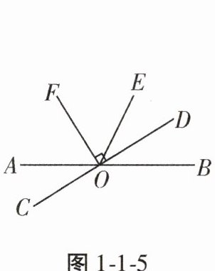 4. 如图 1 - 1 - 5,直线 AB,CD 相交于点 O,∠DOF = 90°,OF 平分∠AOE。若∠BOD = 32°,则∠BOE 的度数为