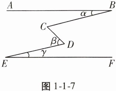 6. 如图 1 - 1 - 7,AB//EF,∠C = 60°,则α,β,γ 的关系为