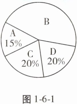3. 某班同学对“开学第一课”节目评价等级的扇形图如图1-6-1所示, 则B等级所在扇形的圆心角度数为 ( )