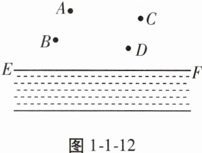 13. 如图 1 - 1 - 12,平原上有 A,B,C,D 四个村庄,为解决当地缺水问题,政府准备投资修建一个蓄水池。