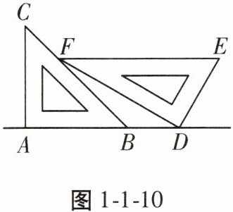 10. 将一副三角尺按如图 1 - 1 - 10 所示方式摆放,点 A,B,D 在同一条直线上,EF//AD,∠E = 60°,则∠BFD 的度数为____。