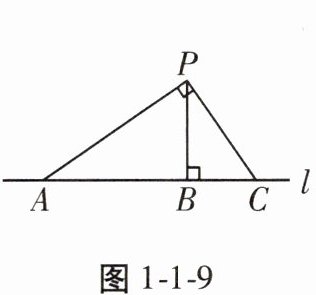 9. 如图 1 - 1 - 9,P 是直线 l 外一点,A,B,C 三点在直线 l 上,且 PB⊥l,垂足为 B,∠APC = 90°,则下列结论:①线段 AP 是点 A 到直线 PC 的距离;②线段 BP 的长是点 P 到直线 l 的距离;③PA,PB,PC 三条线段中,PB 最短;④线段 PC 的长是点 P 到直线 l 的距离。其中正确的是____(填序号)。
