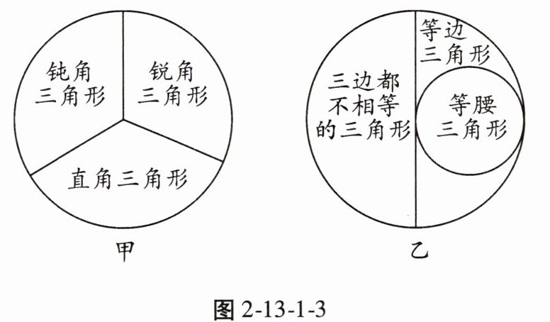 1. 关于三角形的分类,有如图2-13-1-3所示的甲、乙两种分法,则 ( )