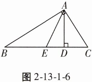 4. 如图2-13-1-6,在△ABC中,∠BAC是直角,AD⊥BC,垂足为D,点E在线段BD上,找出图中的锐角三角形、直角三角形和钝角三角形。