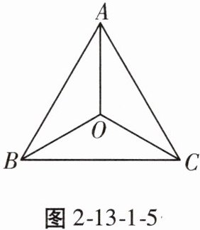3. 如图2-13-1-5,在△ABC中,AB = BC = CA,点O在△ABC内,OA = OB = OC,找出图中的等腰三角形和等边三角形。