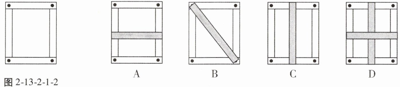 5. 如图2 - 13 - 2 - 1 - 2,小明做了一个长方形框架,但发现它很容易变形。若要加固此长方形框架,则他应该选择的加固方案是 ( )