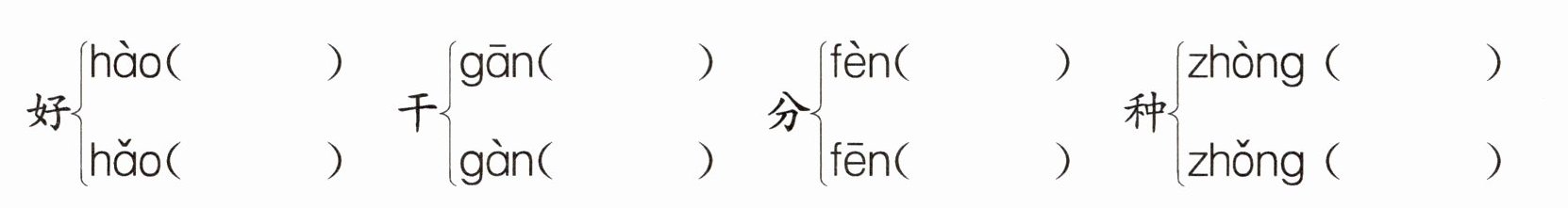 (示例)爱好 好人 干旱 干活 水分 分数 种花 种子