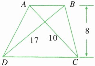 1. 如图,梯形的两条对角线长分别为10cm和17cm,高为8cm,求这个梯形的面积.