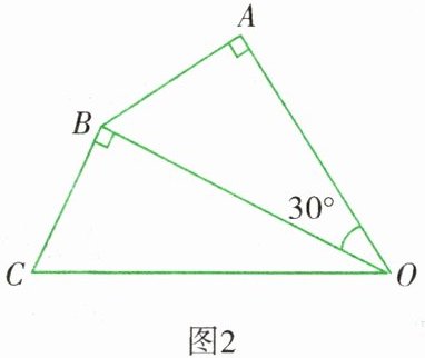 1. (遵义最新中考题)如图 1 是第七届国际数学教育大会(ICME)会徽,在其主体图案中选择两个相邻的直角三角形,恰好能组合得到如图 2 所示的四边形 OABC. 若$AB= BC= 1,∠AOB= 30^{\circ }$,则点 B 到 OC 的距离为( )