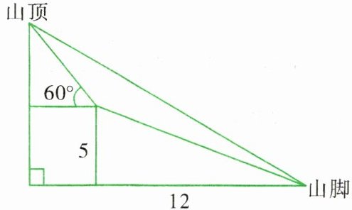 2. (牡丹江最新中考题)小明去爬山,在山脚看山顶角度为$30^{\circ }$,小明在坡比为$5:12$的山坡上走 1300 米,此时小明看山顶的角度为$60^{\circ }$,山高( )