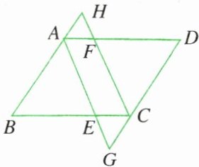 1. 如图,在$□ ABCD$中,$∠BAD$ 和 $∠BCD$ 的平分线分别交 $BC、AD$ 于点 $E、F$,且分别交 $DC、BA$ 的延长线于点 $G、H$. 除$□ ABCD$外,图中其余的平行四边形还有哪些?