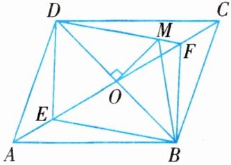 (2)过点O作$OM⊥BD$,垂足为O,交DF于点M,若$△BFM$的周长为12,求四边形BEDF的周长.