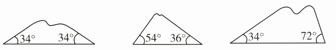 (3)下面分别是三块拼图中的一部分,按角分,这三块拼图原来的形状各是什么三角形?