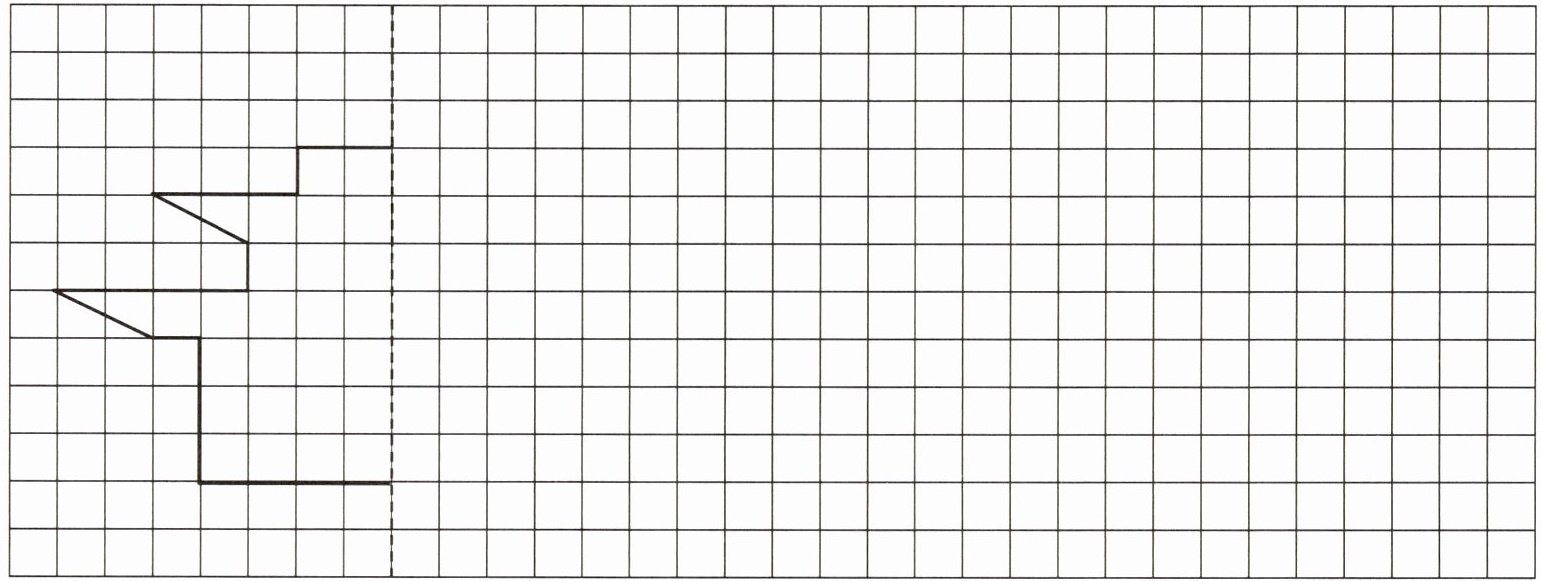 (1)以虚线为对称轴,画出轴对称图形的另一半。