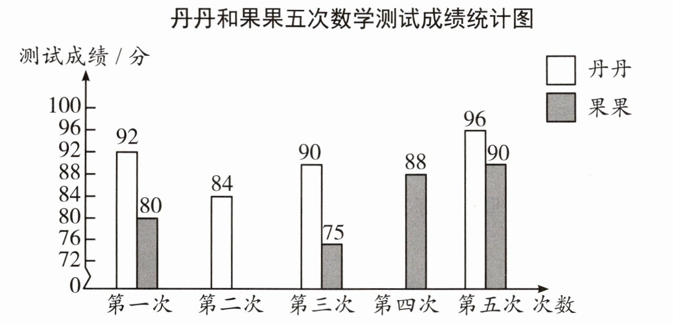 (3)这五次测试,丹丹的平均分是( )分,果果的平均分是( )分。