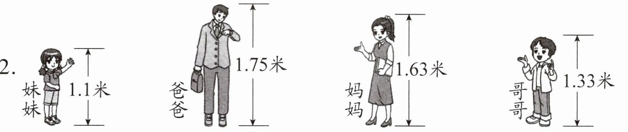 (2)把上面四人的身高按从低到高的顺序排列:( )。