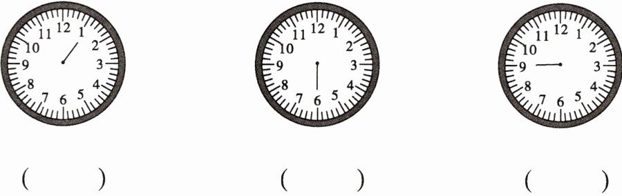 分针从 12 顺时针旋转到下面各个位置,所经过的区域占整个钟面的几分之几?