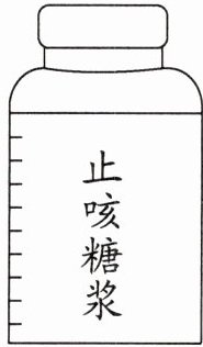 4. 亮亮最近生病咳嗽,医生给亮亮开了一瓶止咳糖浆(如图),并嘱咐亮亮一天喝 2 次,一次喝一格。亮亮一天要喝掉这瓶止咳糖浆的( )。