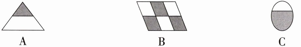 1. 下列图形中,涂色部分小于$\frac {1}{2}$的是( )。