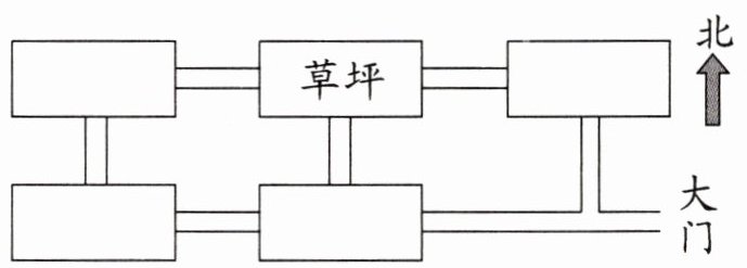 2. ( )在草坪的西面,进了大门向北走是( )。