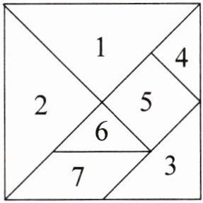 4. 右面是一副七巧板拼成的图案。3、4、5号图形分别占大正方形的$\frac{( )}{( )}$、$\frac{( )}{( )}$、$\frac{( )}{( )}$。