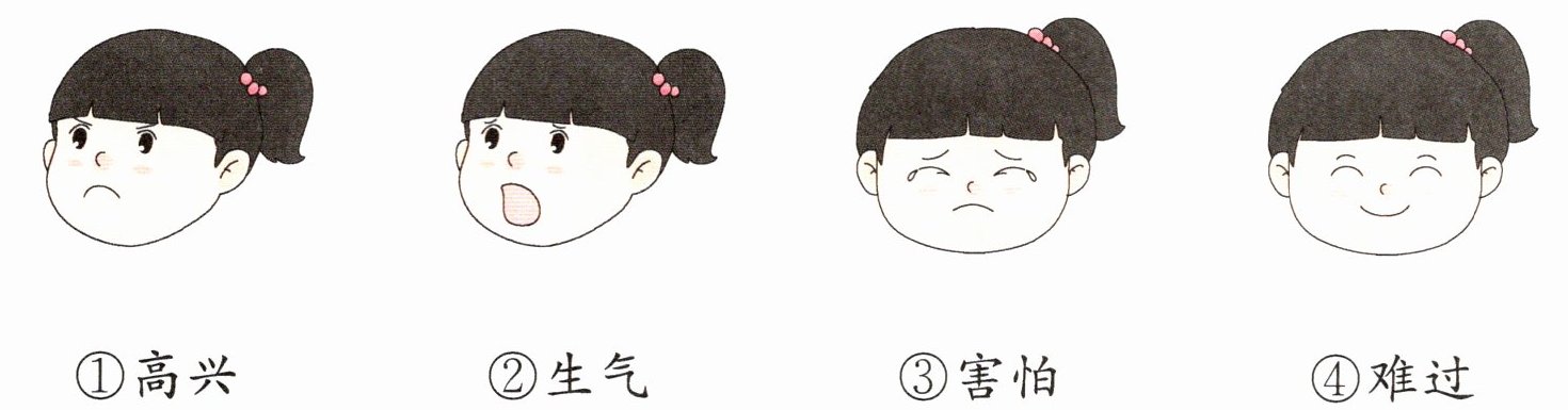 ①高兴 ②生气 ③害怕 ④难过