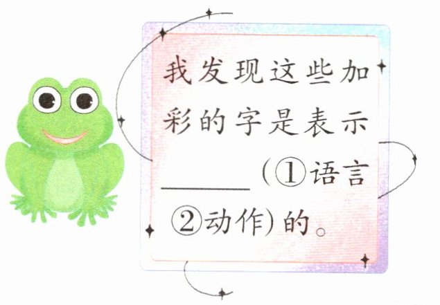 我发现这些加彩的字是表示____(①语言 ②动作)的。