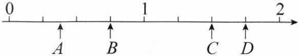 10. 如下图,直线上箭头()所指的位置,距离“ $ \frac{4}{5} + \frac{11}{15} $ ”的结果最近。