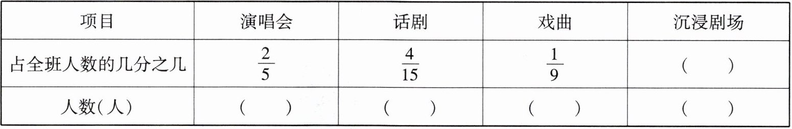 6. 五(3)班有45人,喜欢各种演出的情况如下表:
