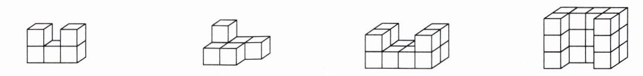 11. 下面的立体图形都是用体积是 1 立方分米的小正方体搭成的。请分别写出它们的体积。