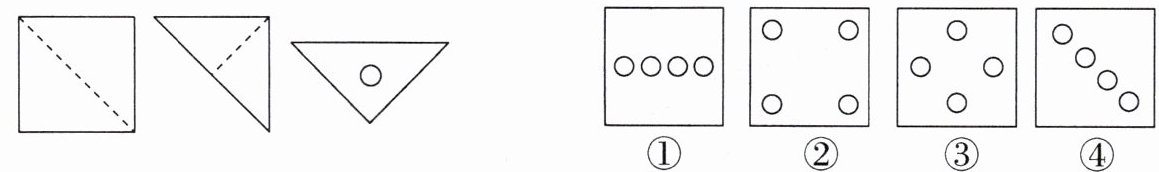 8. 将一张正方形的纸连续对折两次,并在折后的纸中间打一个圆孔(如图所示),再将纸展开,则展开后是()。