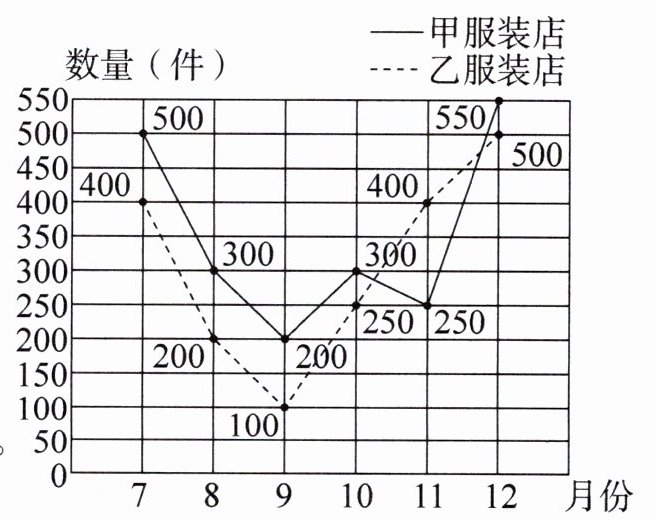 (3)11月,乙服装店的销售量比甲服装店多()件。